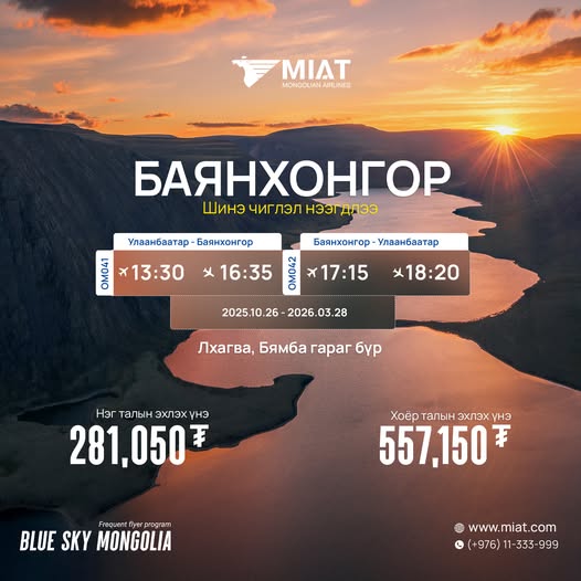 Тийз захиалах болон дэлгэрэнгүй мэдээллийг +976 11 333-999 дугаараас авна уу.