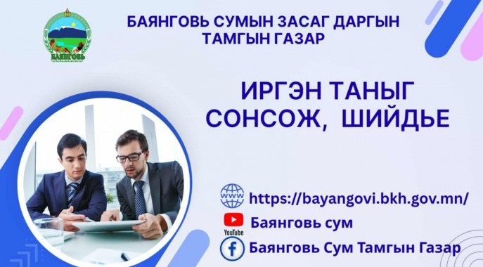 Иргэн таныг сонсож, шийдье
